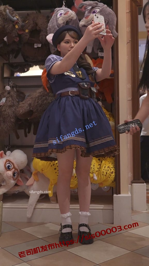 •  兔耳警官服小姐姐逛街,蹲下自拍直接露内裤。