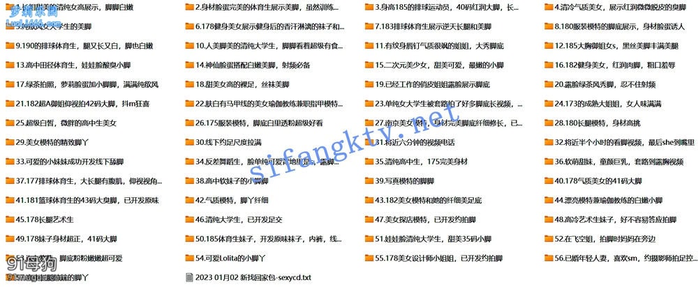 简介:某房32RMB新品,原介绍:呼声很高的套路合集系列来到了第三期!这次妹子57个!本套还附带套路大神现场拍摄的视频(全裸口足), 长达半个小时,尺度拉满! 本套都是人美脚美的高质量妹子,有丰富的生活照和大量脚底展示!足足57个妹子,身高从155到190, 脚码从35到42,各种你想看的风格都有,满足你对高高在上的女神玉足的窥探欲,值得收藏!